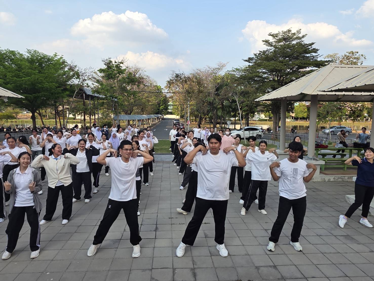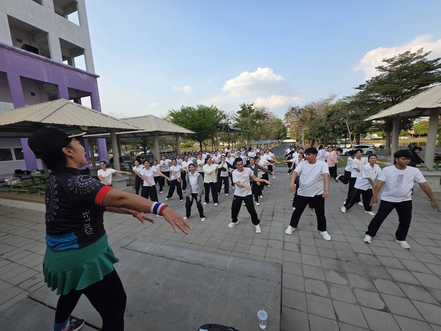 บรรยากาศเต็มไปด้วยความคึกคักและพลังงานบวก ของเหล่านักศึกษา คณาจารย์ และบุคลากร ที่มาร่วมขยับร่างกายคลายเครียดจากการเรียนและการทำงาน โดยได้รับเกียรติจาก "ครูนก หน้ามอ" ผู้นำเต้นคนเก่ง มานำทีมออกสเต็ปสุดมันส์ เรียกเหงื่อและรอยยิ้มได้ตลอดชั่วโมงเต็ม